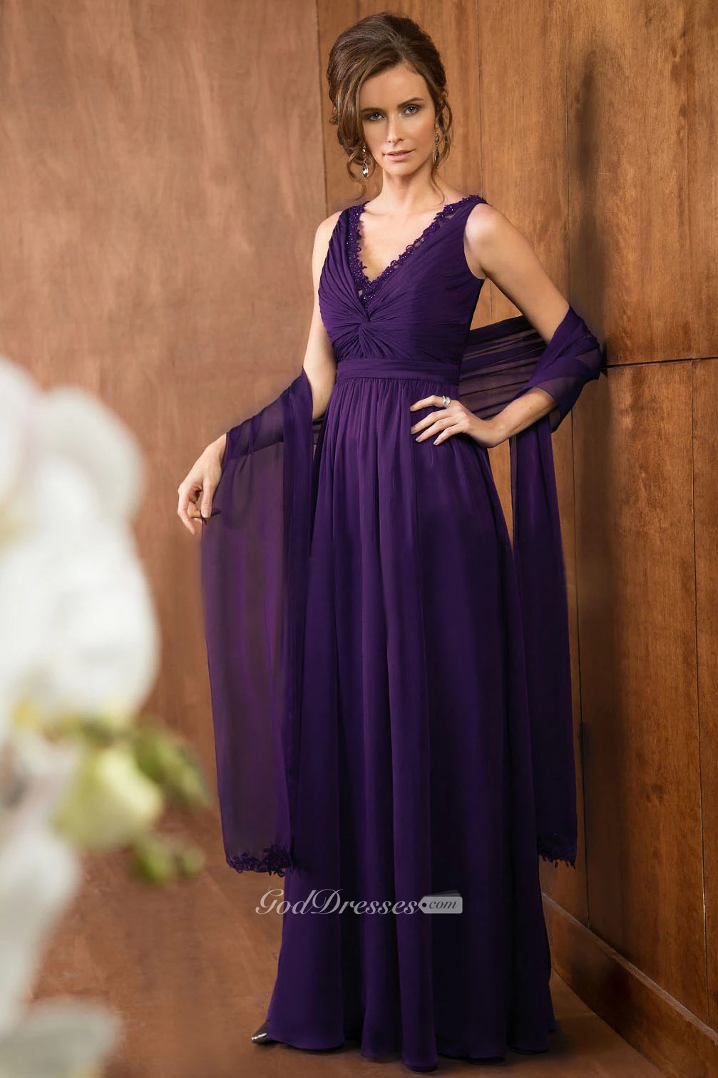 V-Neck Sleeveless A-Line Gown With Shawl And Beadings