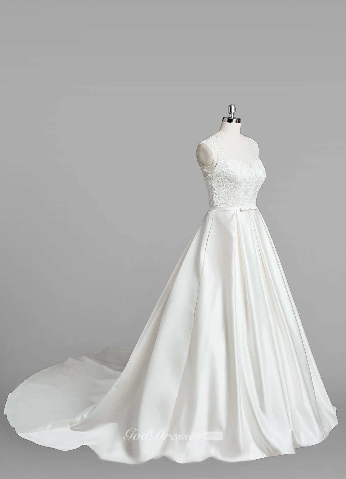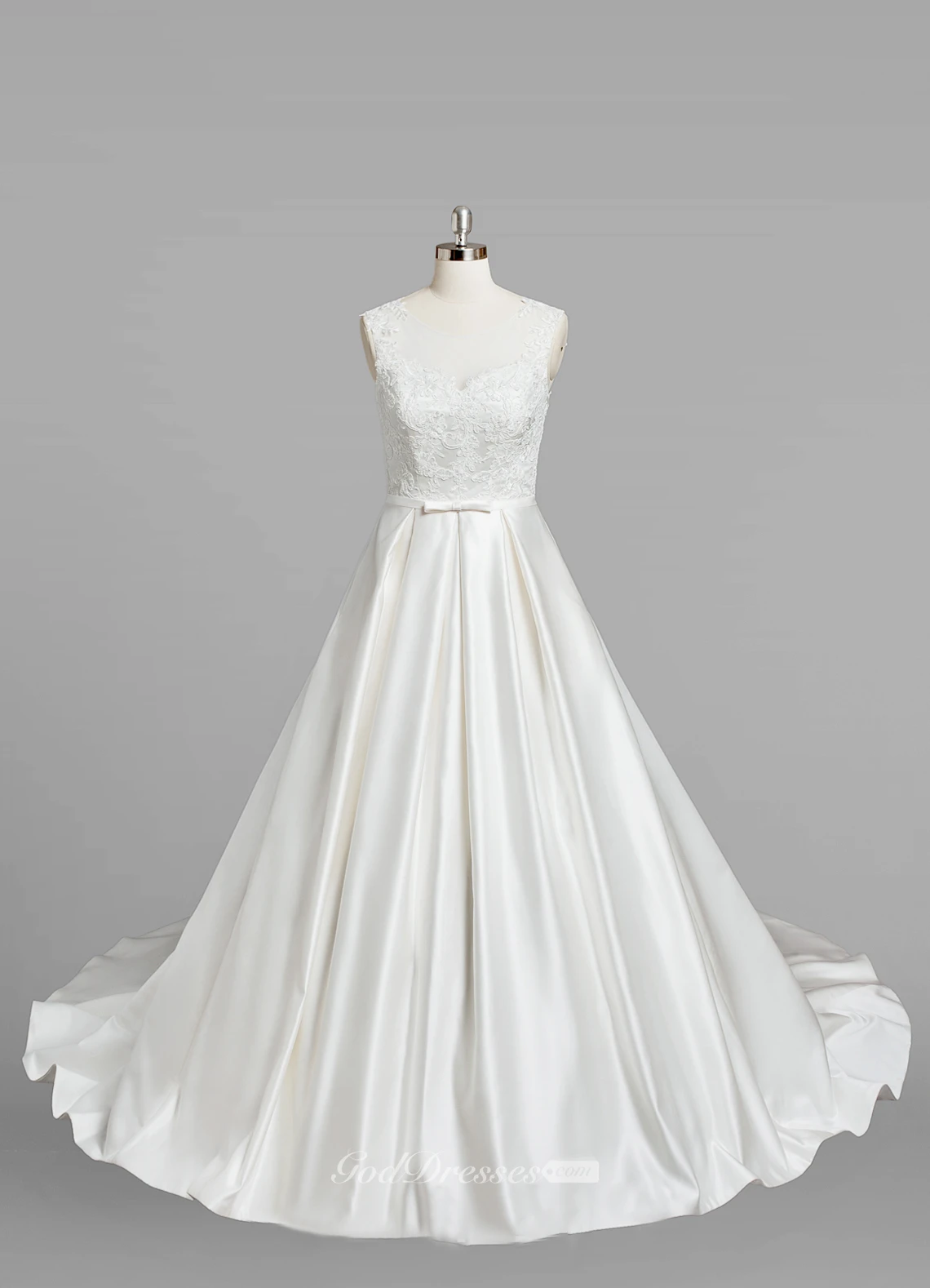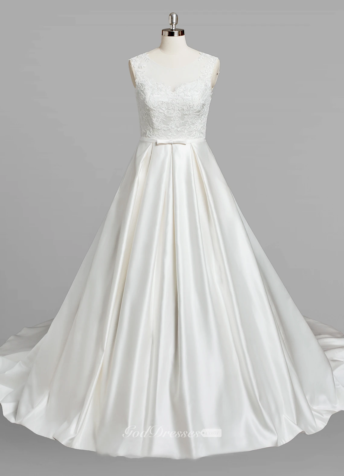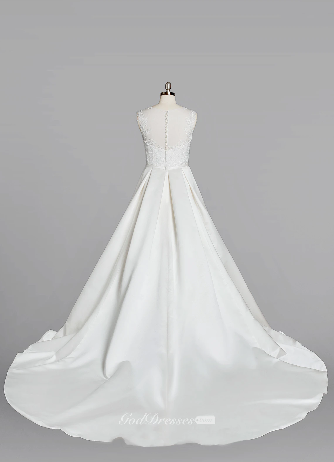 V-Neck Sleeveless A-Line Satin Wedding Dress With Beading