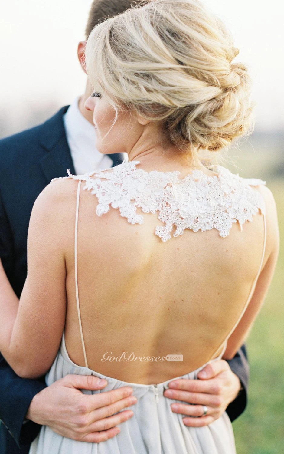 V-Neck Sleeveless Backless Long Chiffon Wedding Dress With Ruching