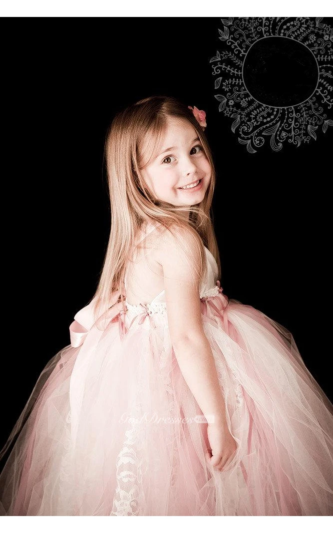 V Neck Sleeveless Empire Tulle Ball Gown With Flower and Bow