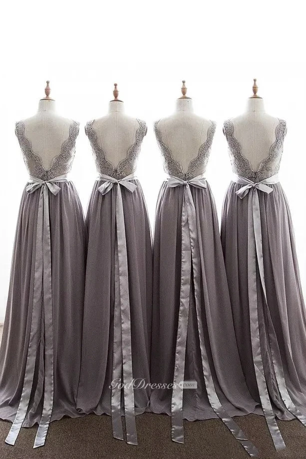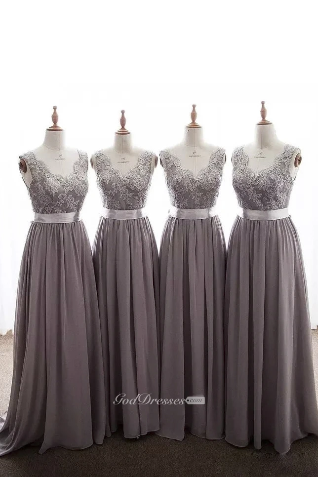 V-neck Sleeveless Floor-length Chiffon Lace A-Line Dress