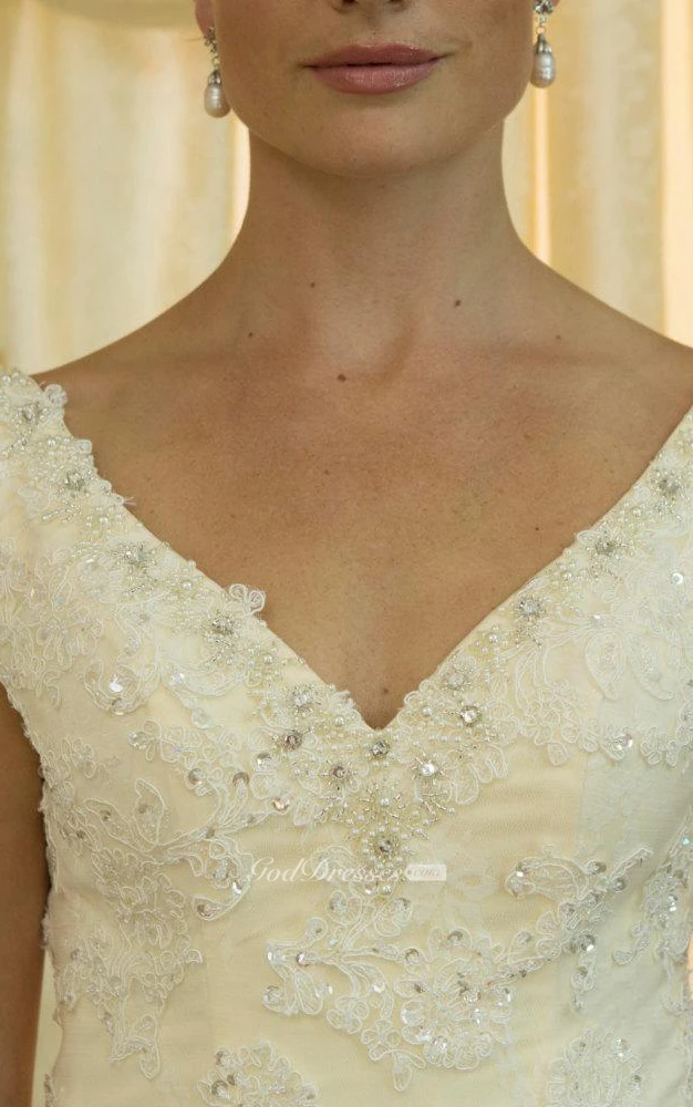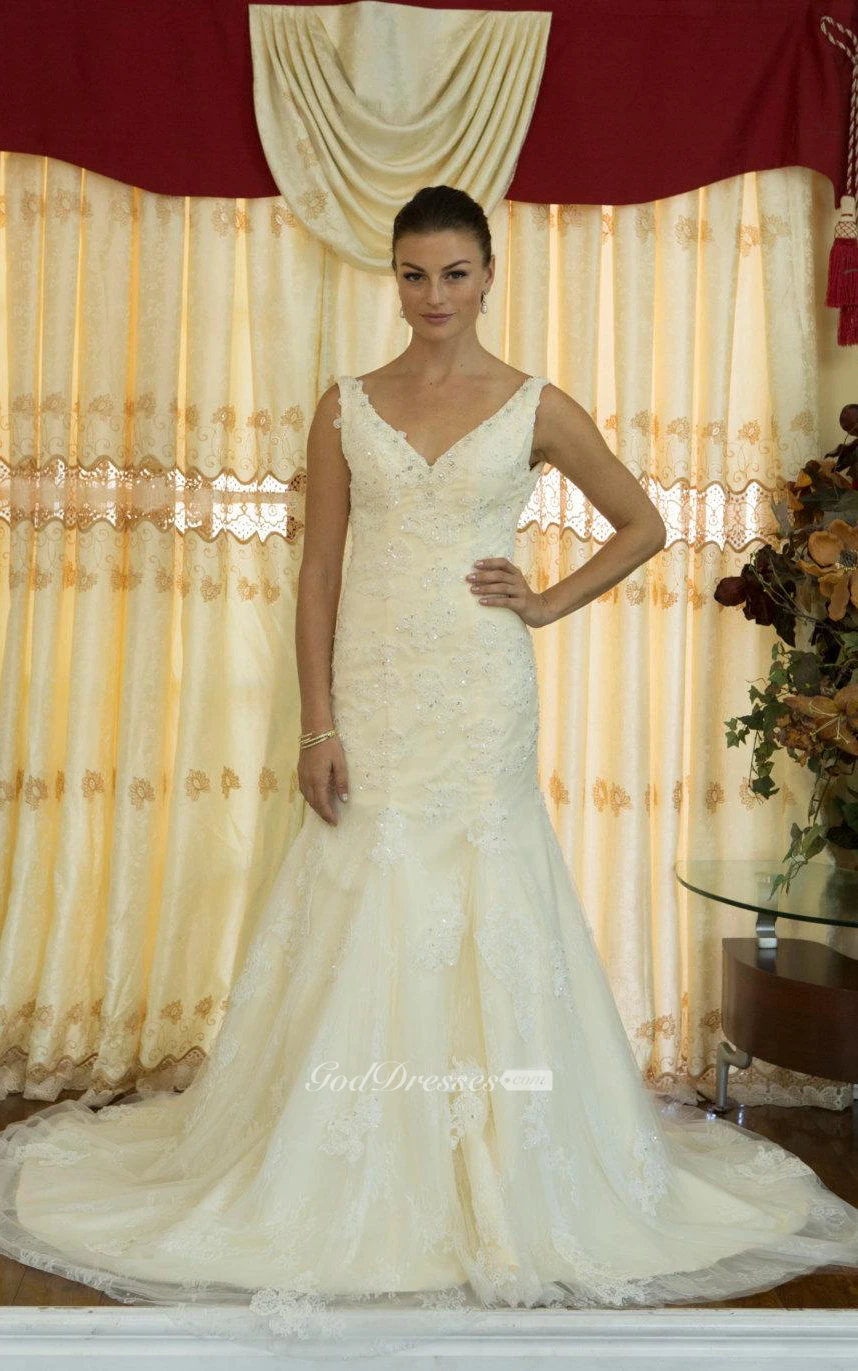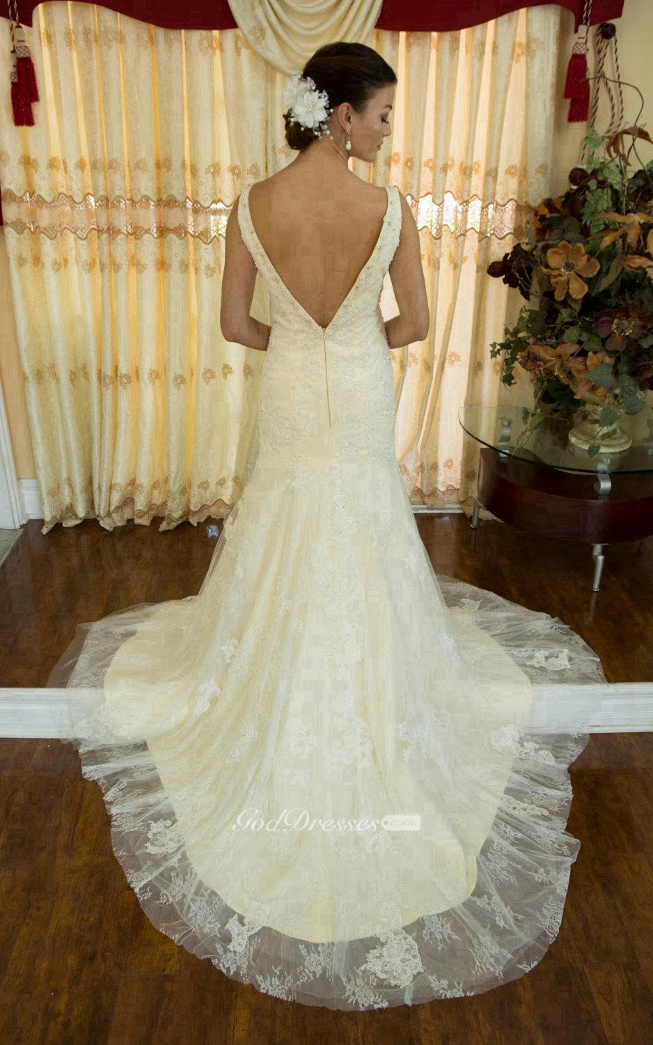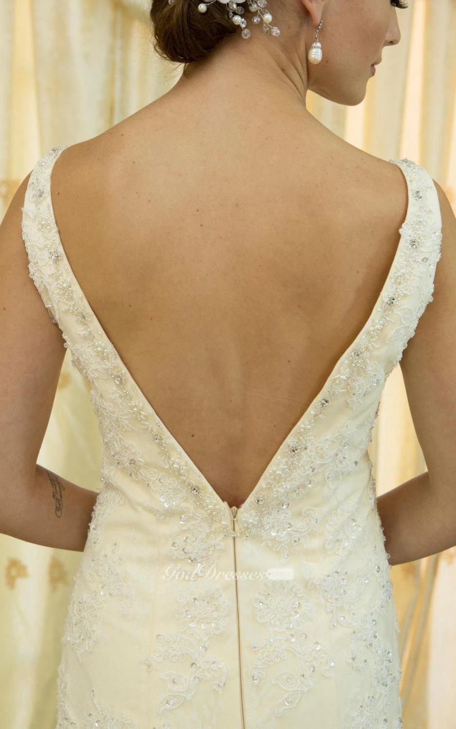 V-Neck Sleeveless Lace Mermaid Dress With Beadings and Low-V Back