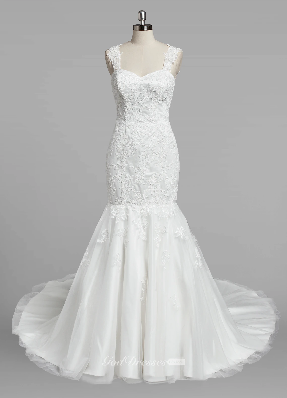 V-Neck Sleeveless Lace Mermaid Weddign Dress With Court Train