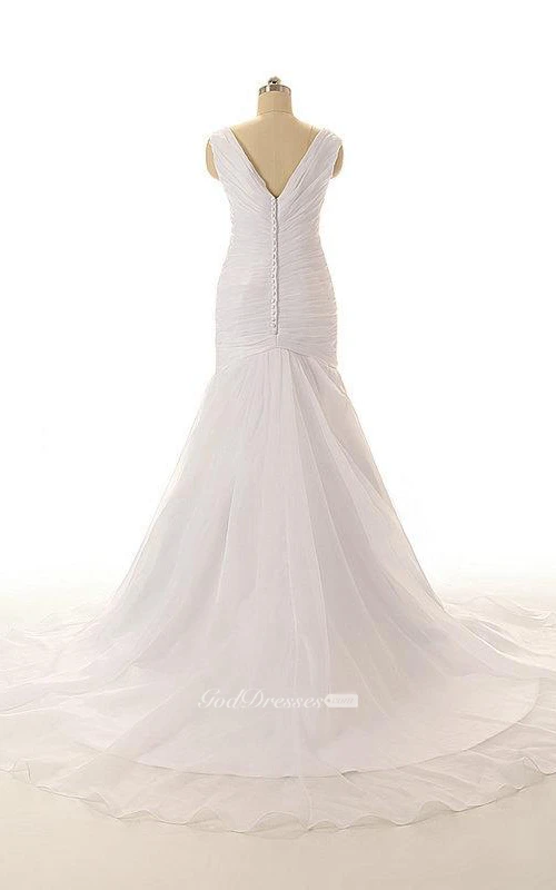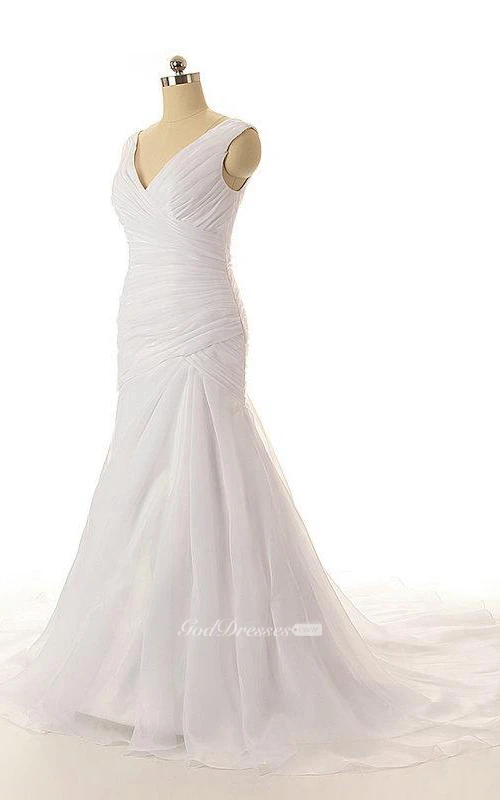 V-Neck Sleeveless Mermaid Dress With Crisscross Ruching