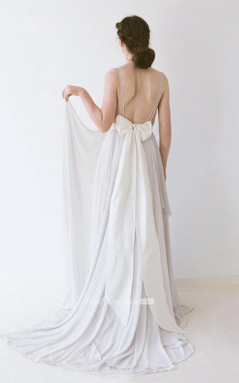 V-Neck Sleeveless Pleated Chiffon Dress With Back Bow