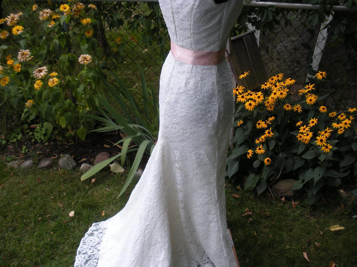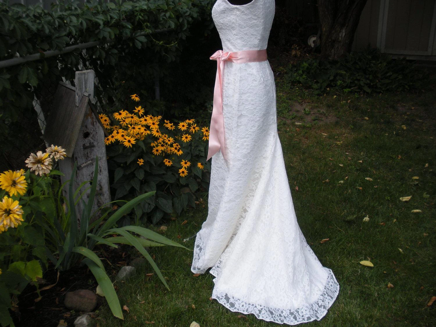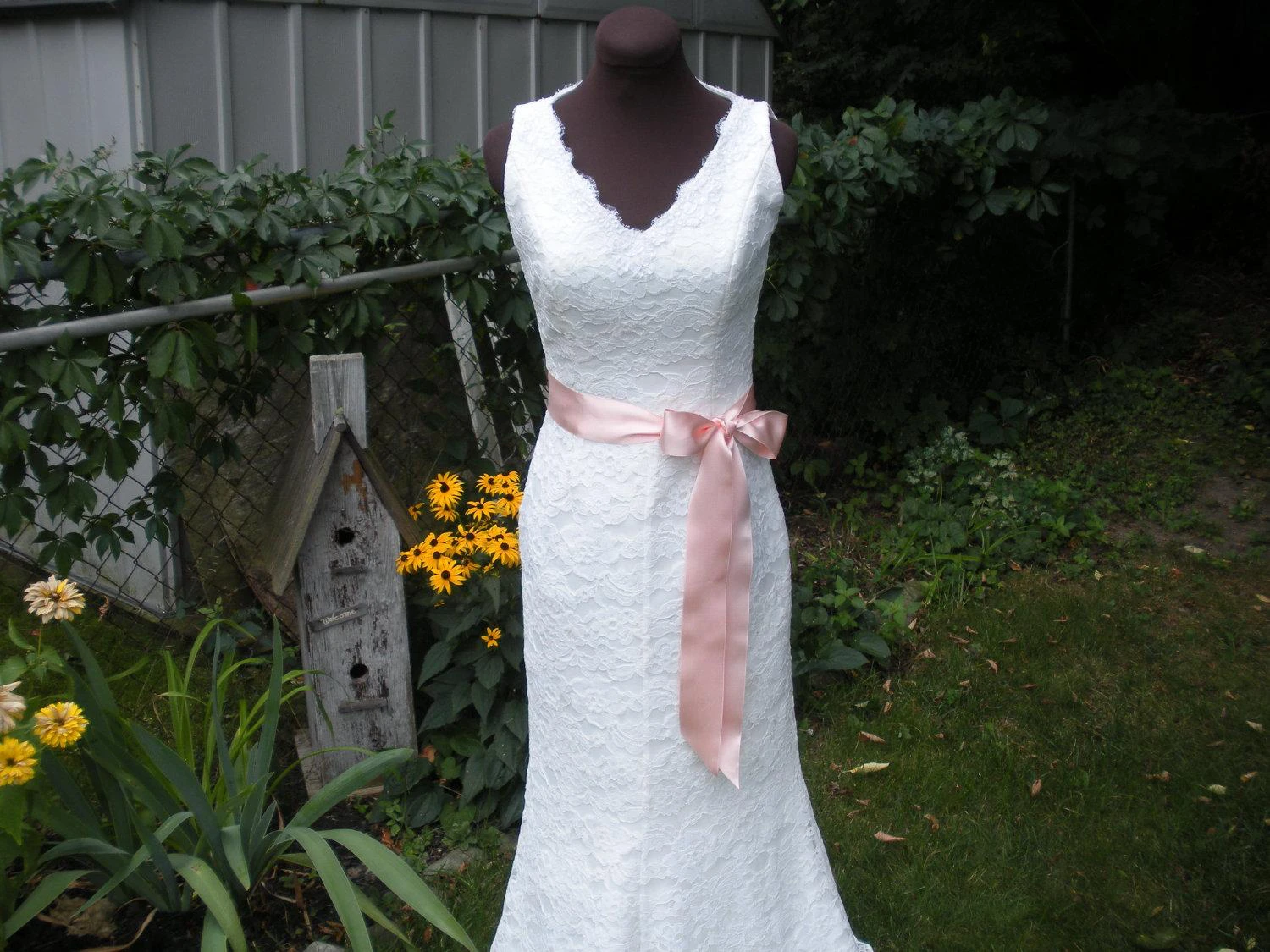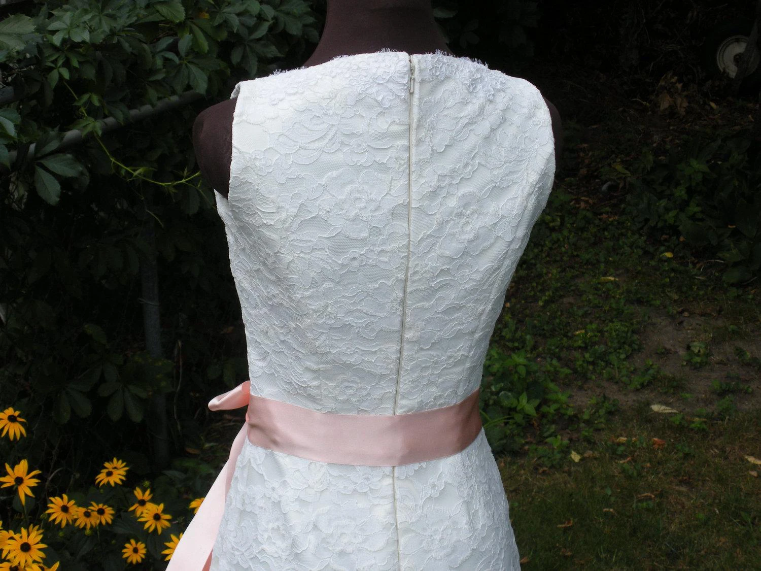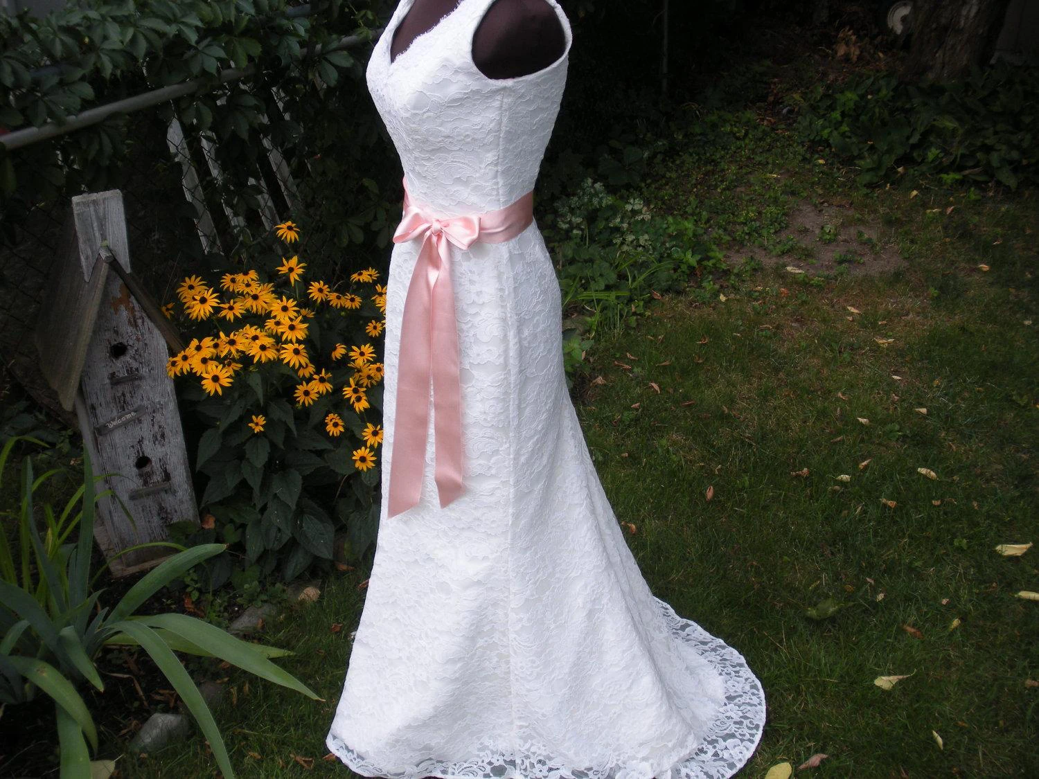 V-Neck Sleeveless Sheath Lace Dress With Bow Satin Sash