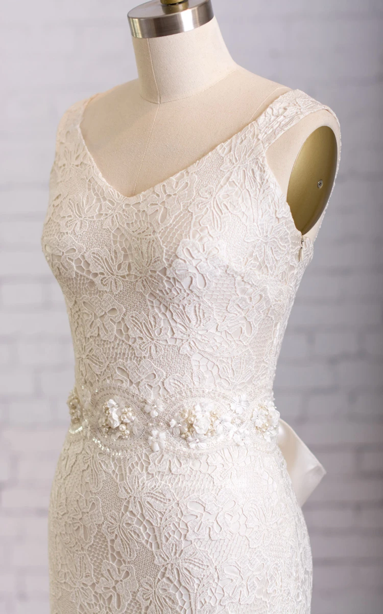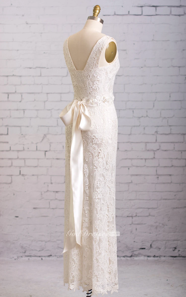 V-Neck Sleeveless Sheath With Bow And Beaded Belt