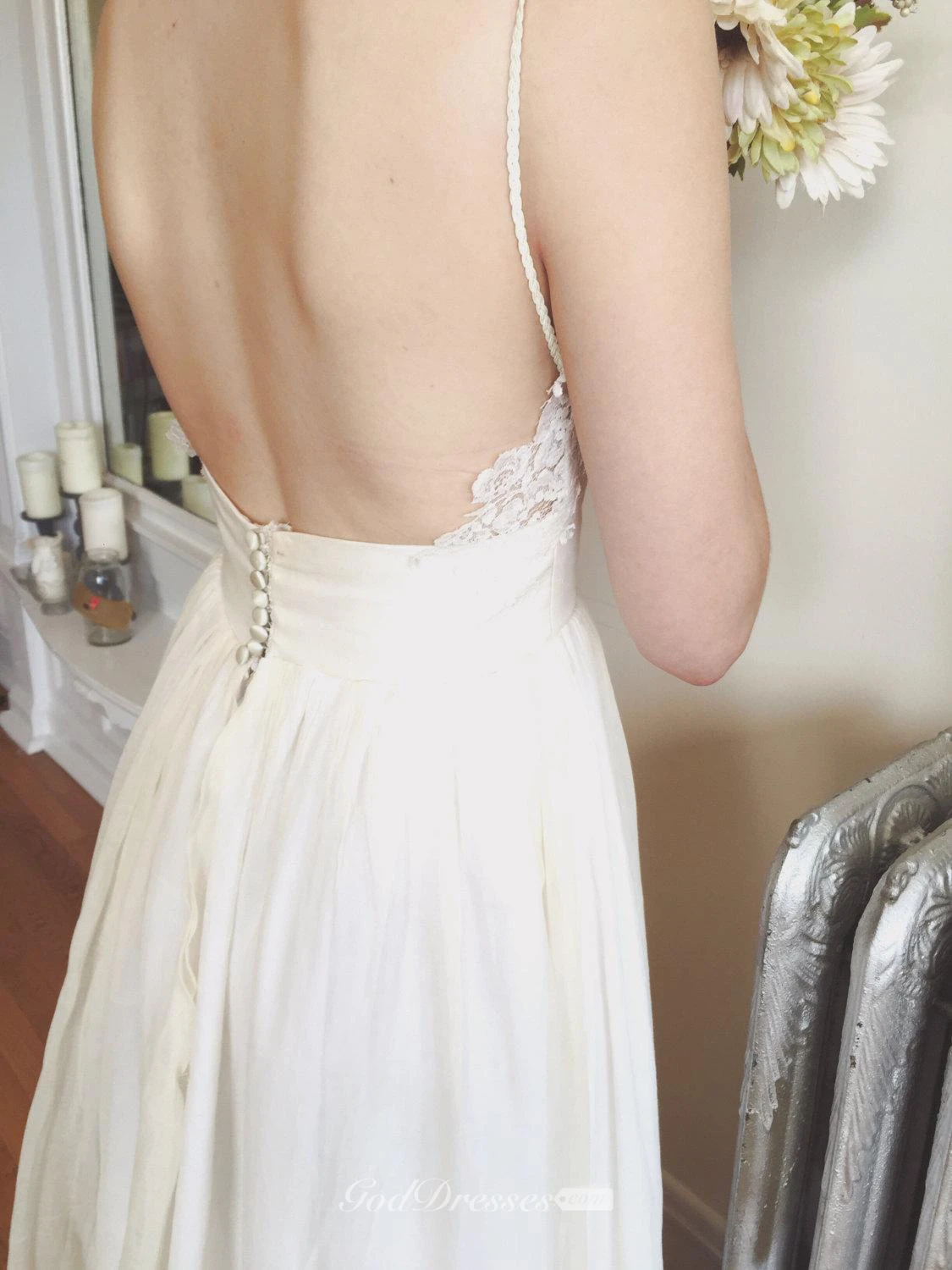 V-Neck Spaghetti Straps A-Line Sleeveless Chiffon Dress With Open Back