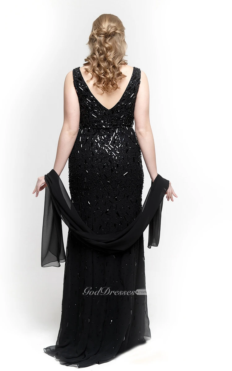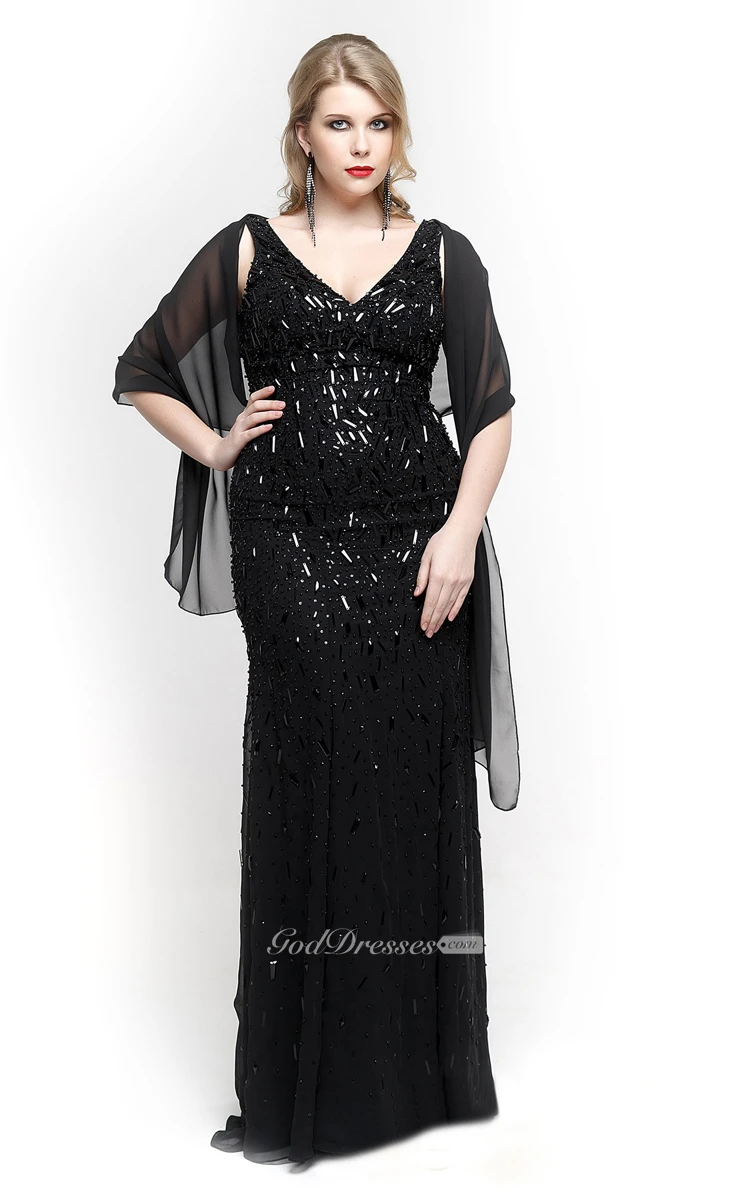 V Neck Straps Sheath Beaded Long Dress With Chiffon Cape