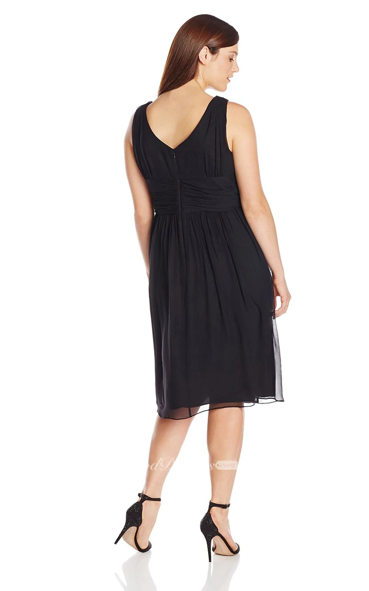 V-neckline Knee-length Chiffon Dress With Basque Waist