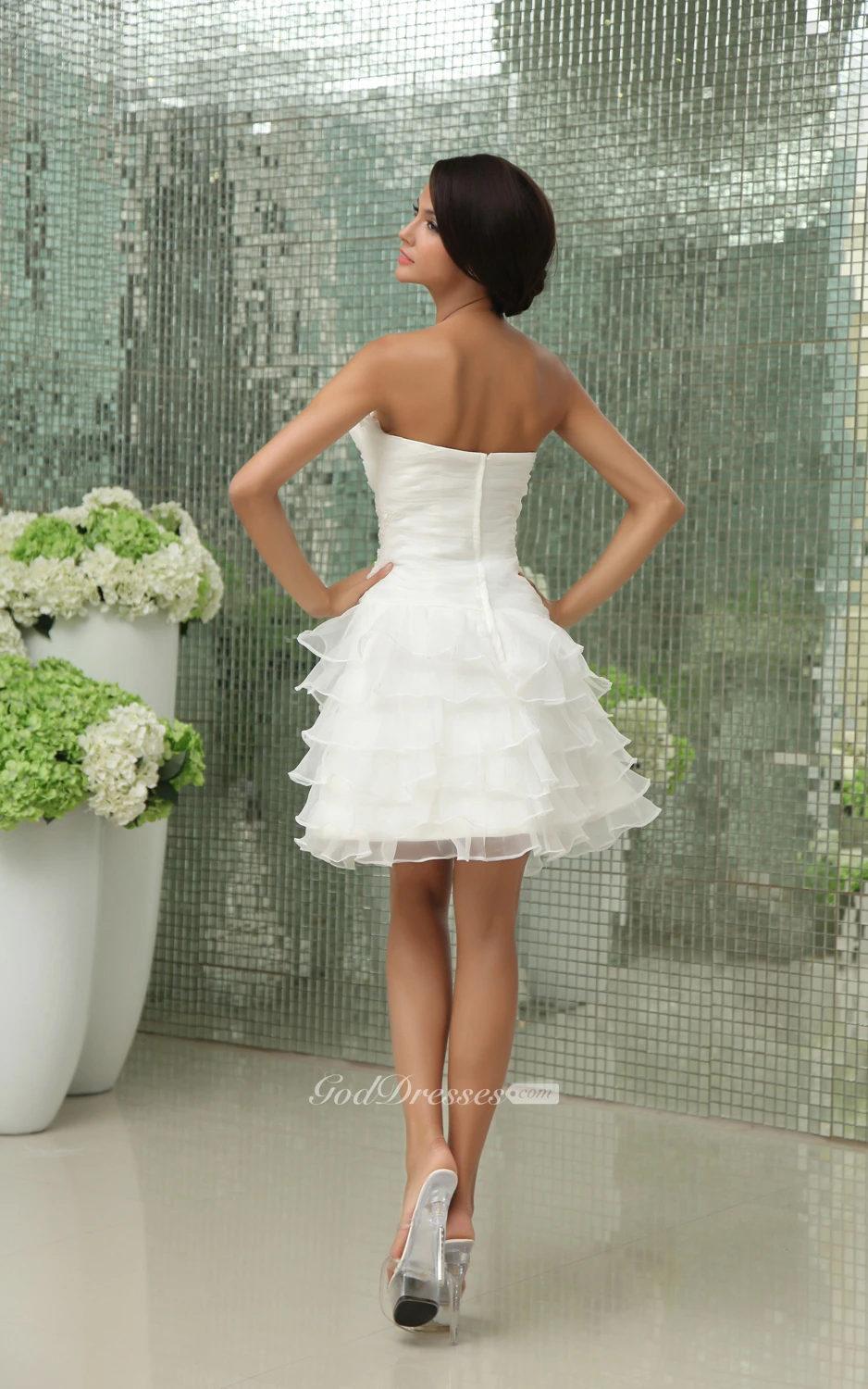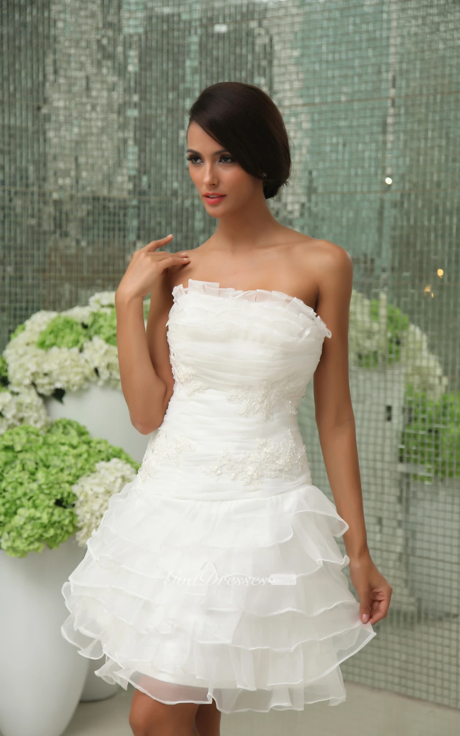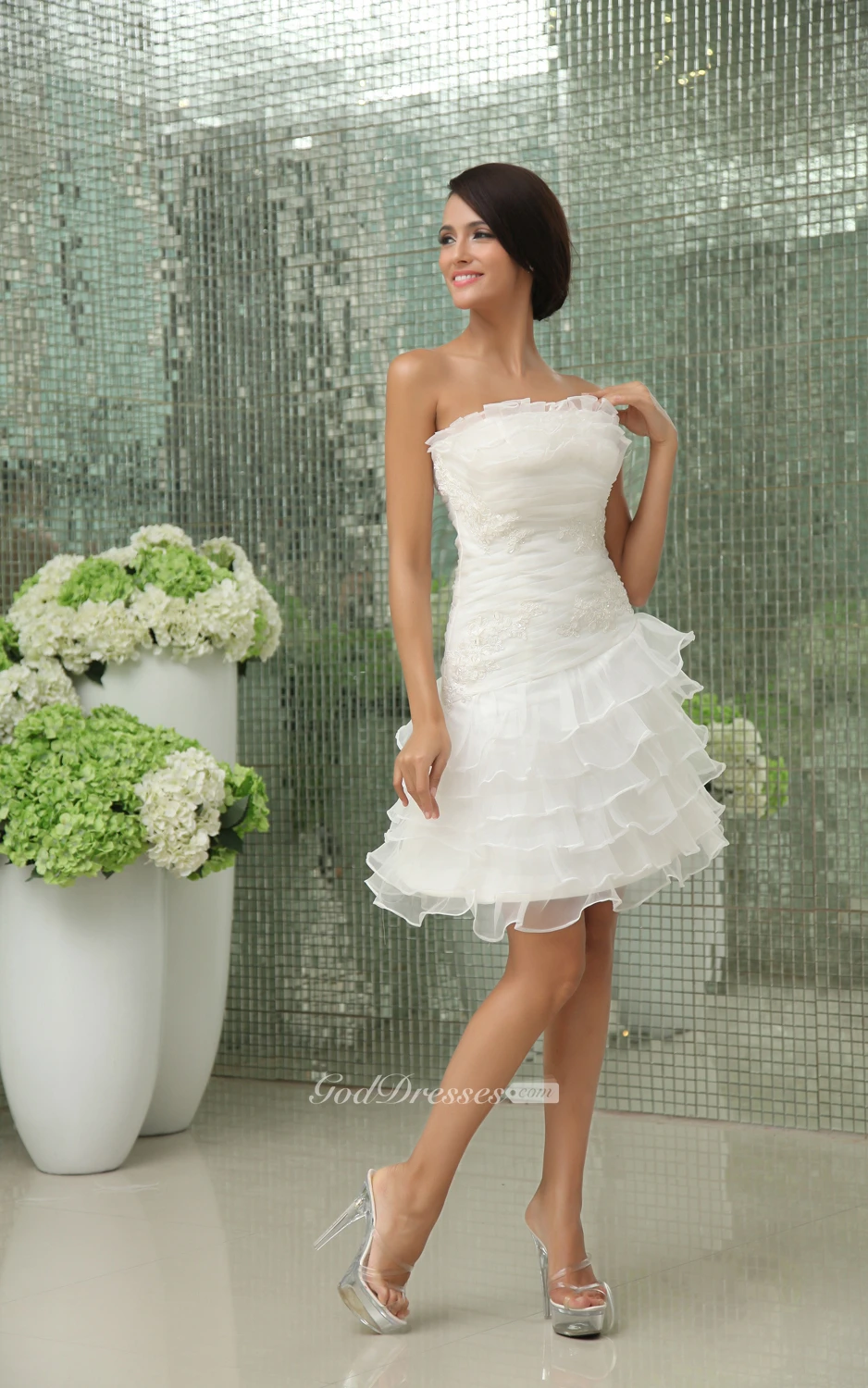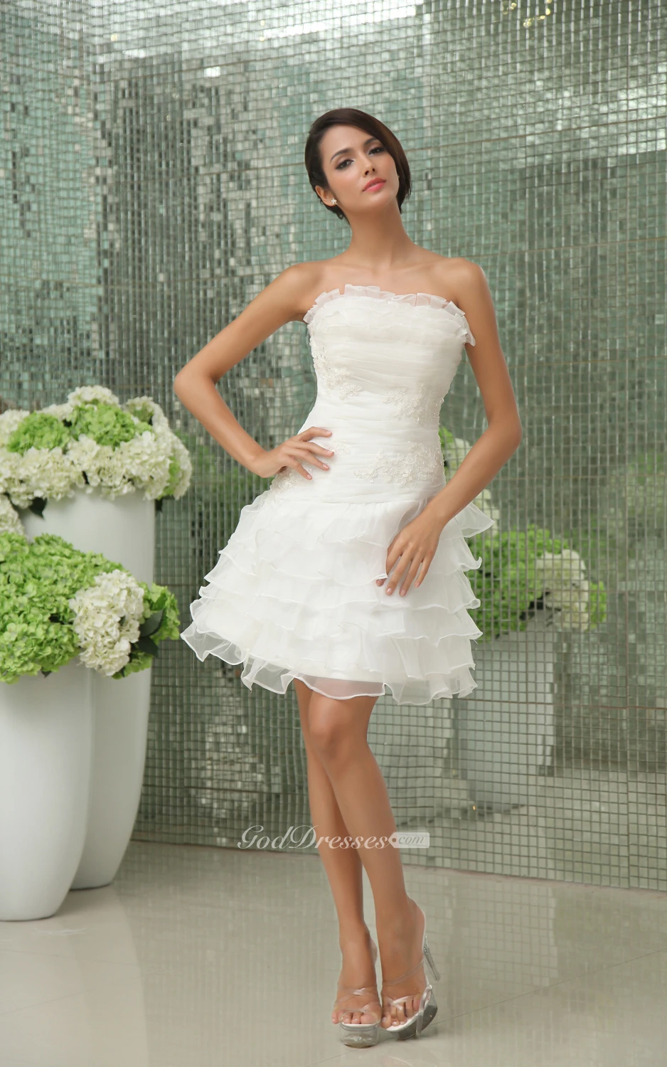 Vibrant Strapless Short Dress With Apliques and Ruffles