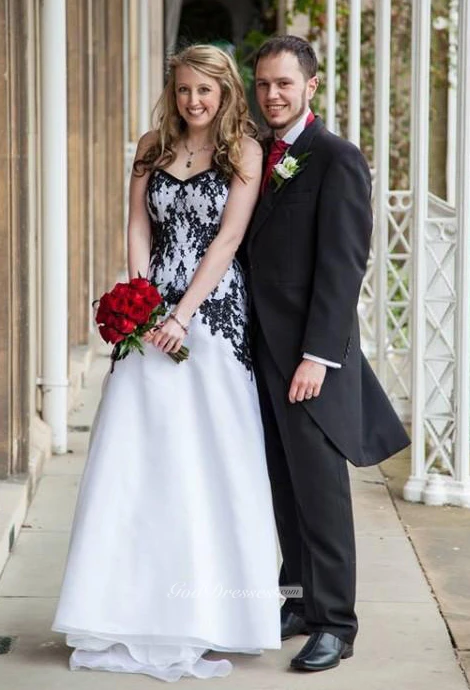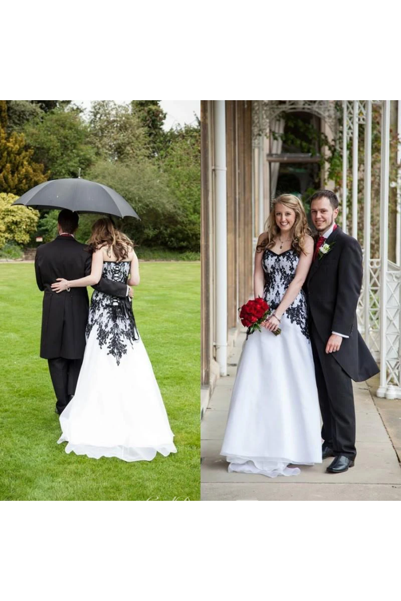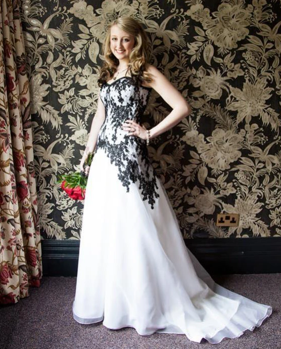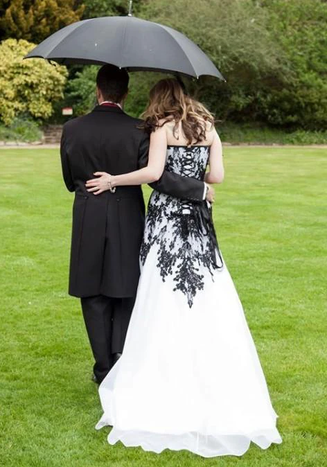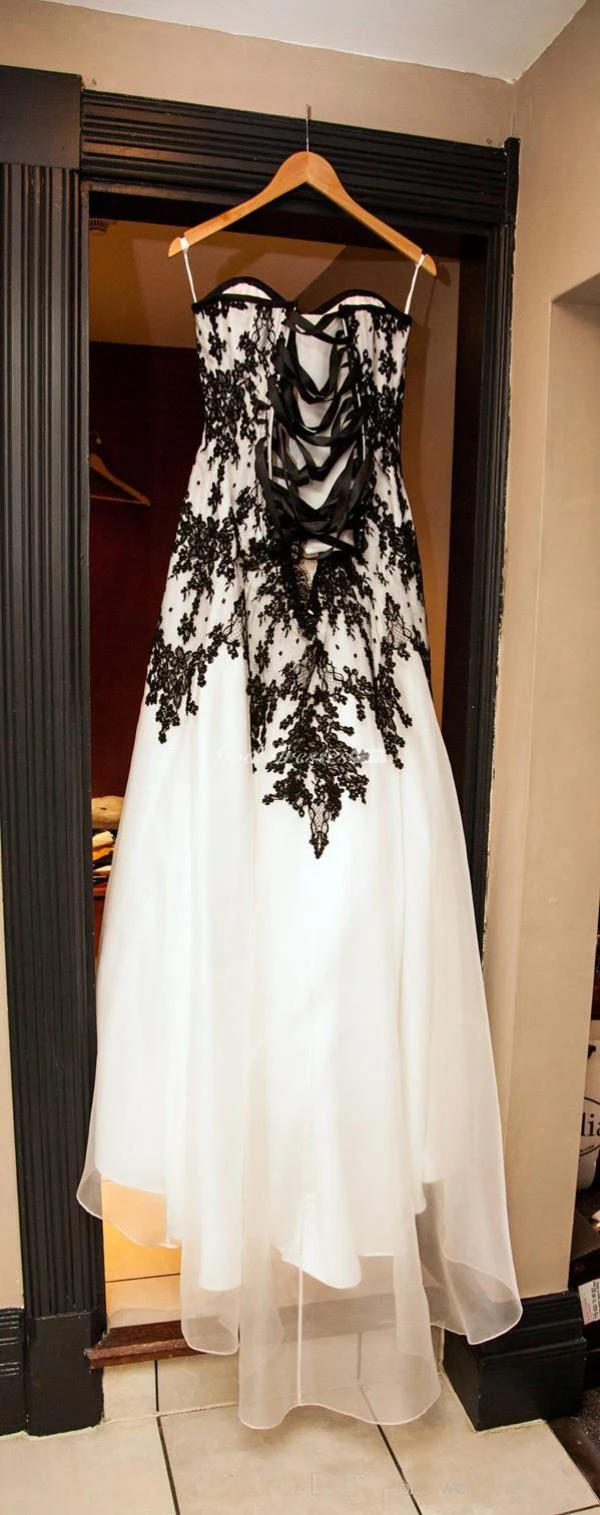 Victorian Gothic Vintage Black Lace and White Organza Garden Wedding Dress