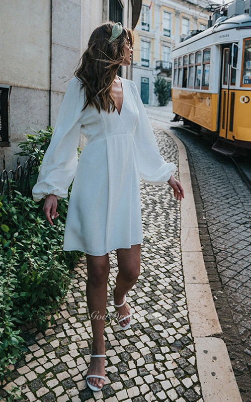 Vintage A Line Chiffon V-neck Mini Bridal Dress