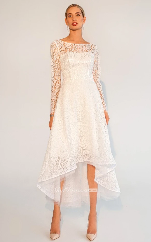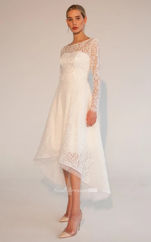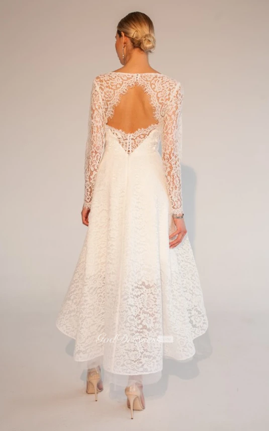 Vintage High-low A Line Tea-length Lace Wedding Gown