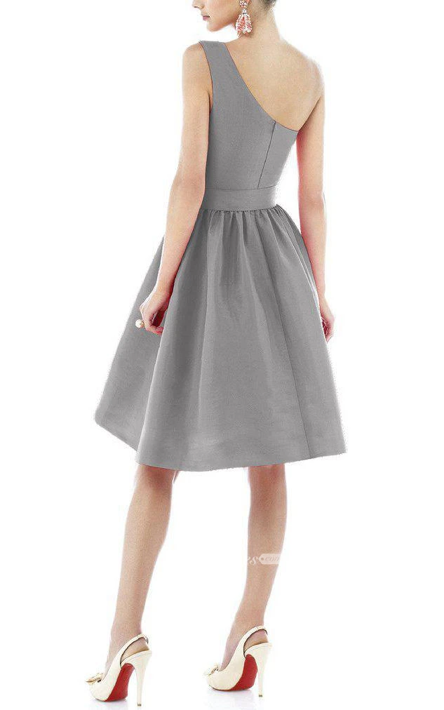 Vintage One Shoulder A-line Knee-length Satin Short Dress
