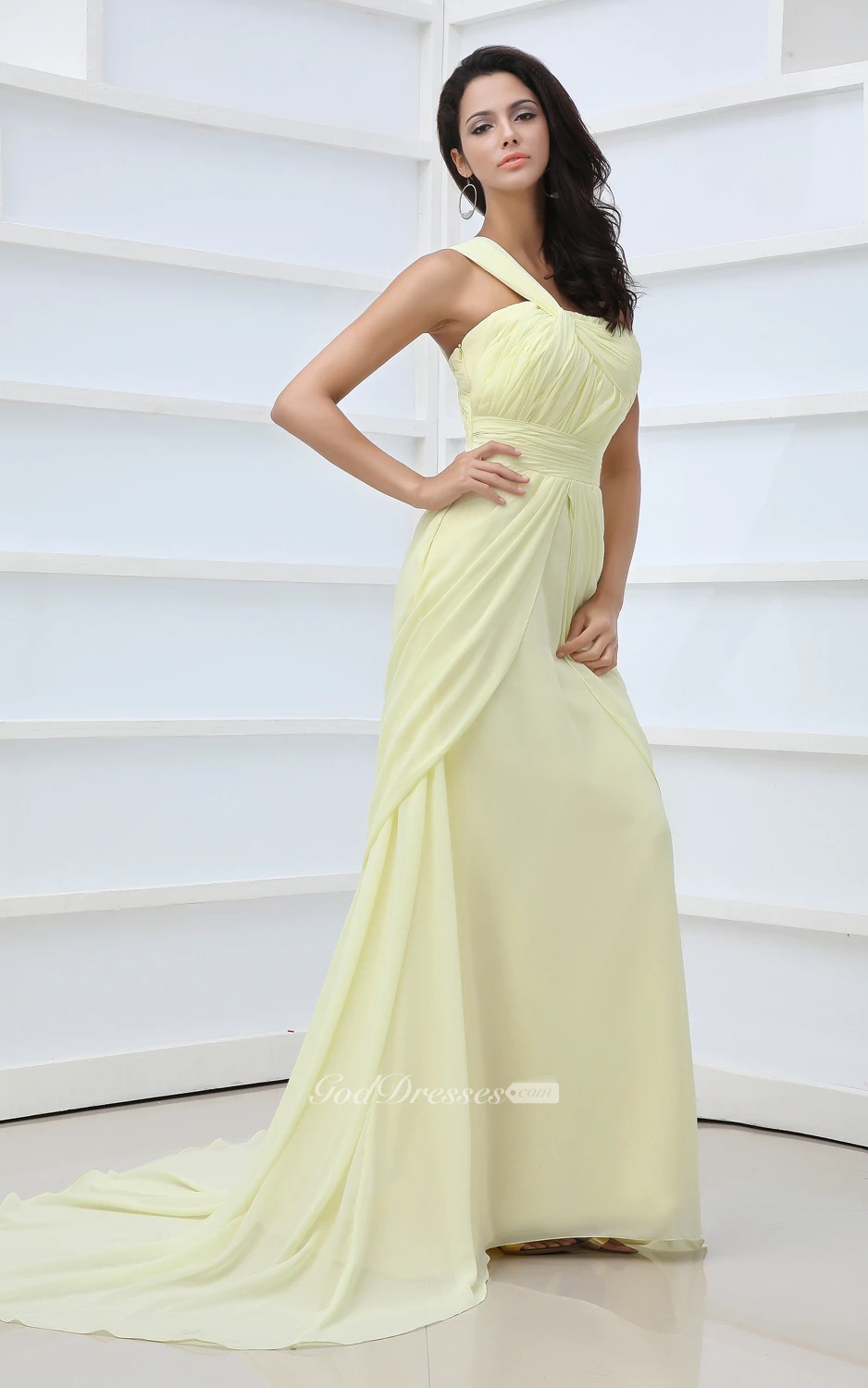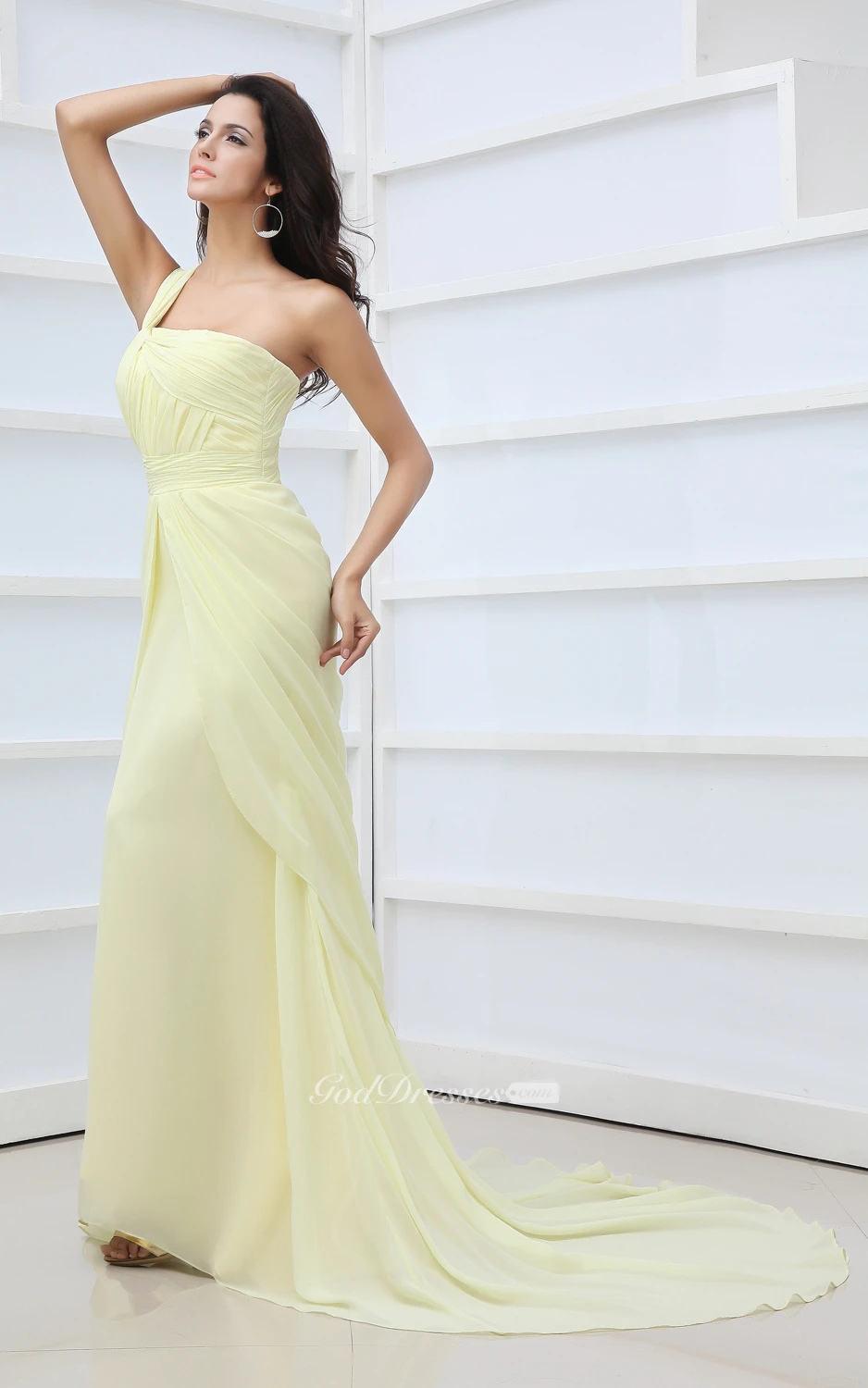 Vintage One-Shoulder Scalloped Neckline Chiffon Gown Front Split