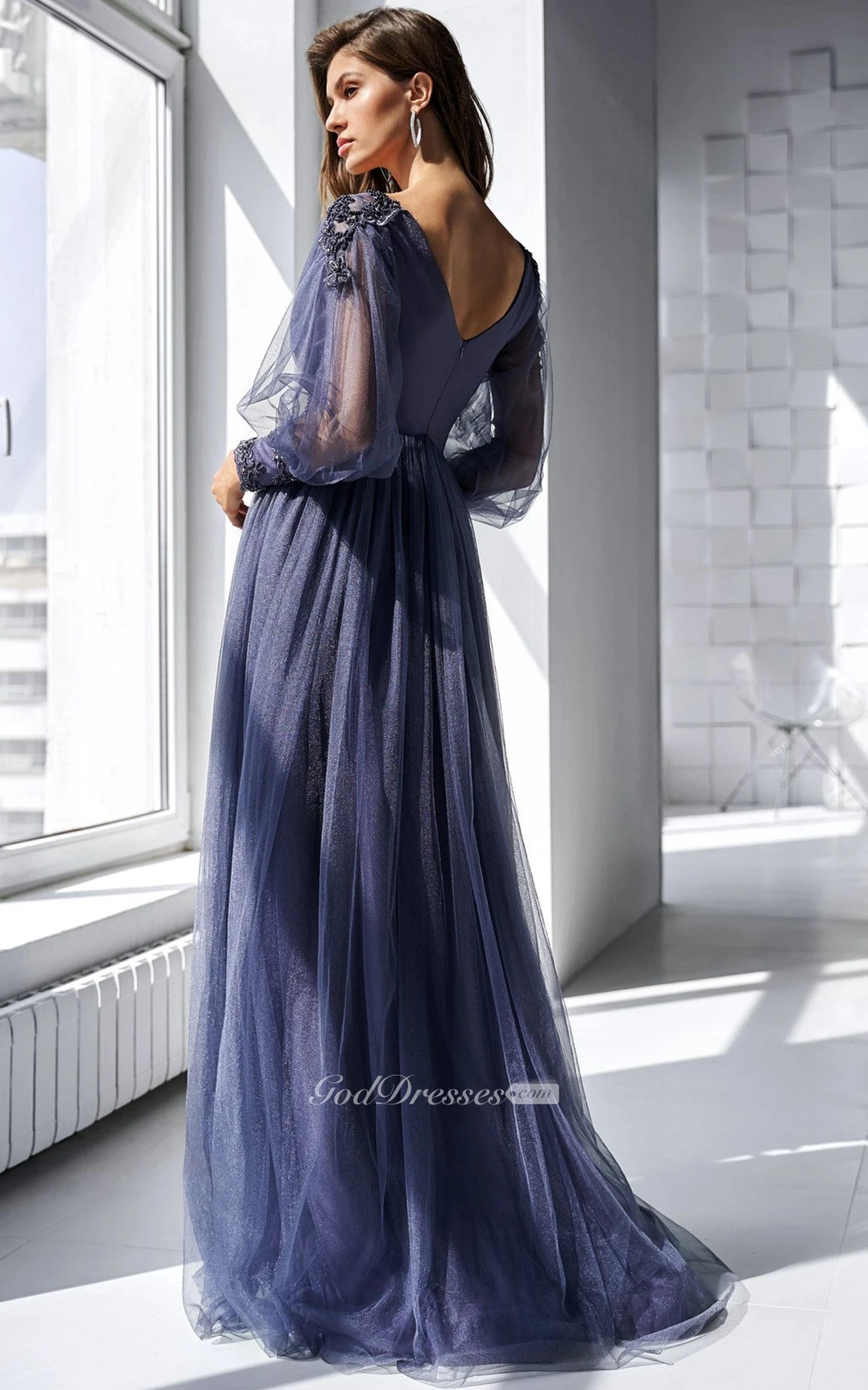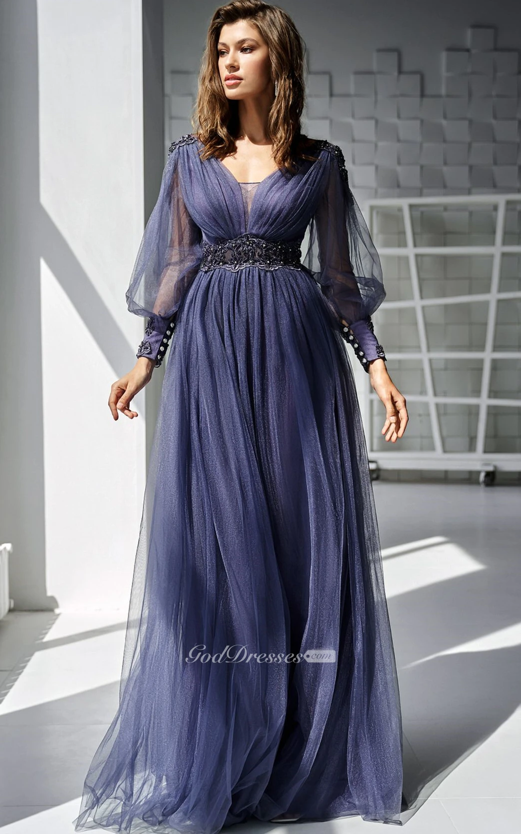The dress fits exactly how it shows in the picture. Super comfortable.