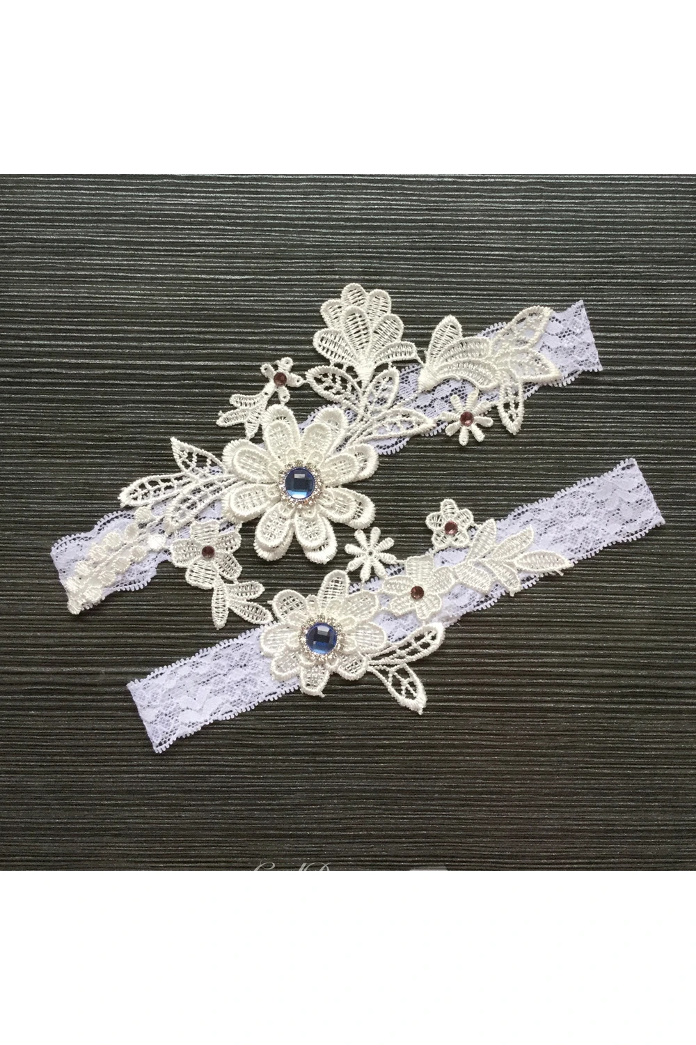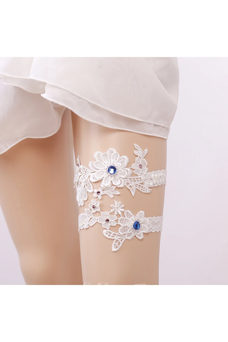 Western Style Blue Diamond Lace Elastic Two Sets Of Bridal Garter Within 16-23inch