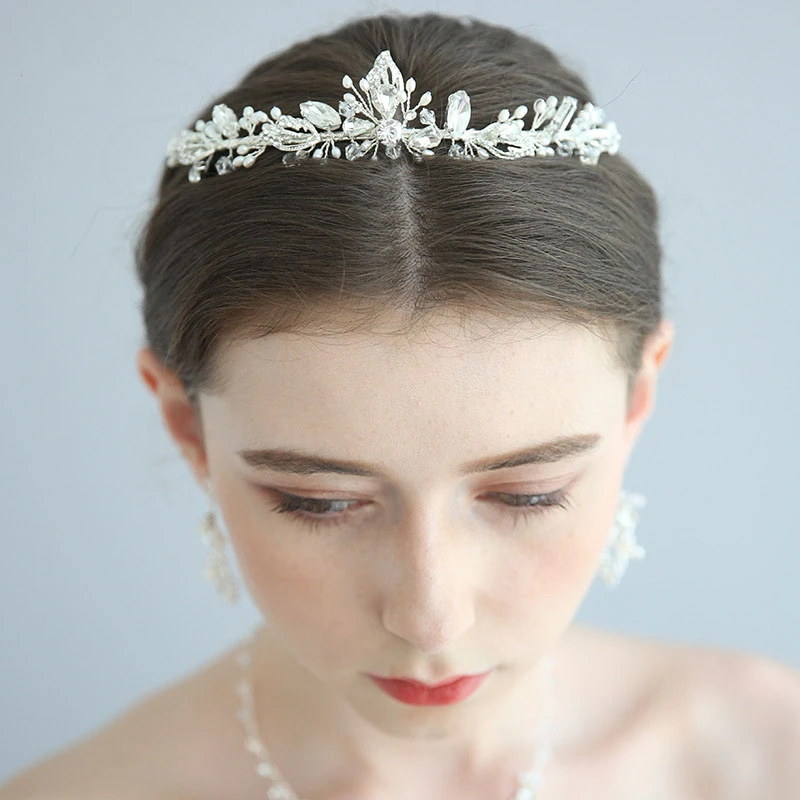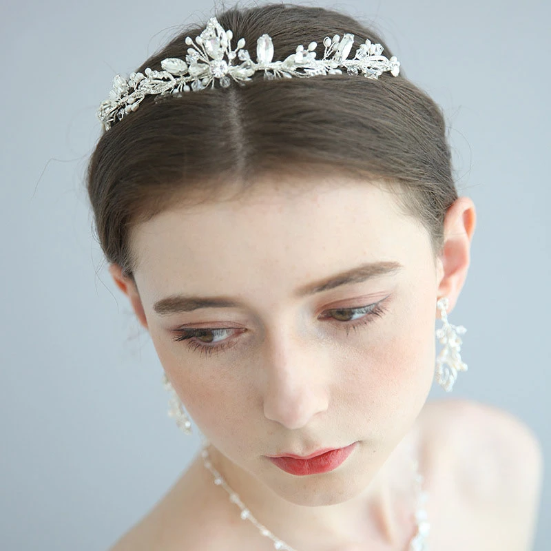 Western Style Classic Rhinestone Pearl Necklace and Earrings and Crown