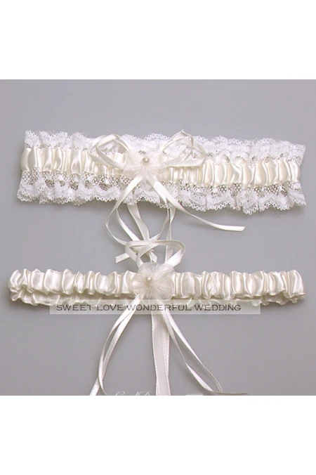 Western Style Flowers Lace Bow Elastic Lace Bridal Garter Within 16-23inch