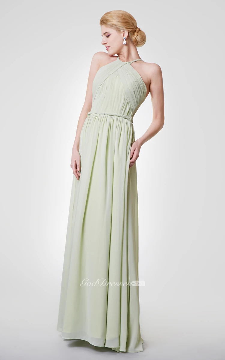 Wonderful A-line Pleated Chiffon Long Dress With Knot Belt